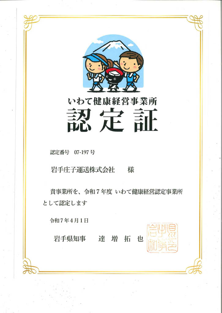 2020年「いわて健康経営認定事業所」となり、2022年「健康経営優良法人(中小規模法人部門)」に認定され、更新しています。